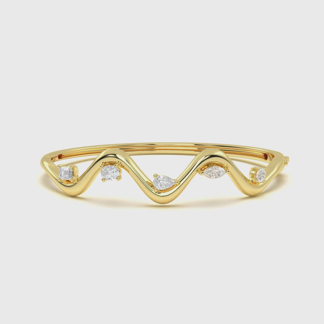 The Curvy Diamond Leher Bracelet features graceful wave-like curves set with pear, marquise, round, and emerald lab grown diamonds. Perfect for celebrations or everyday luxury.