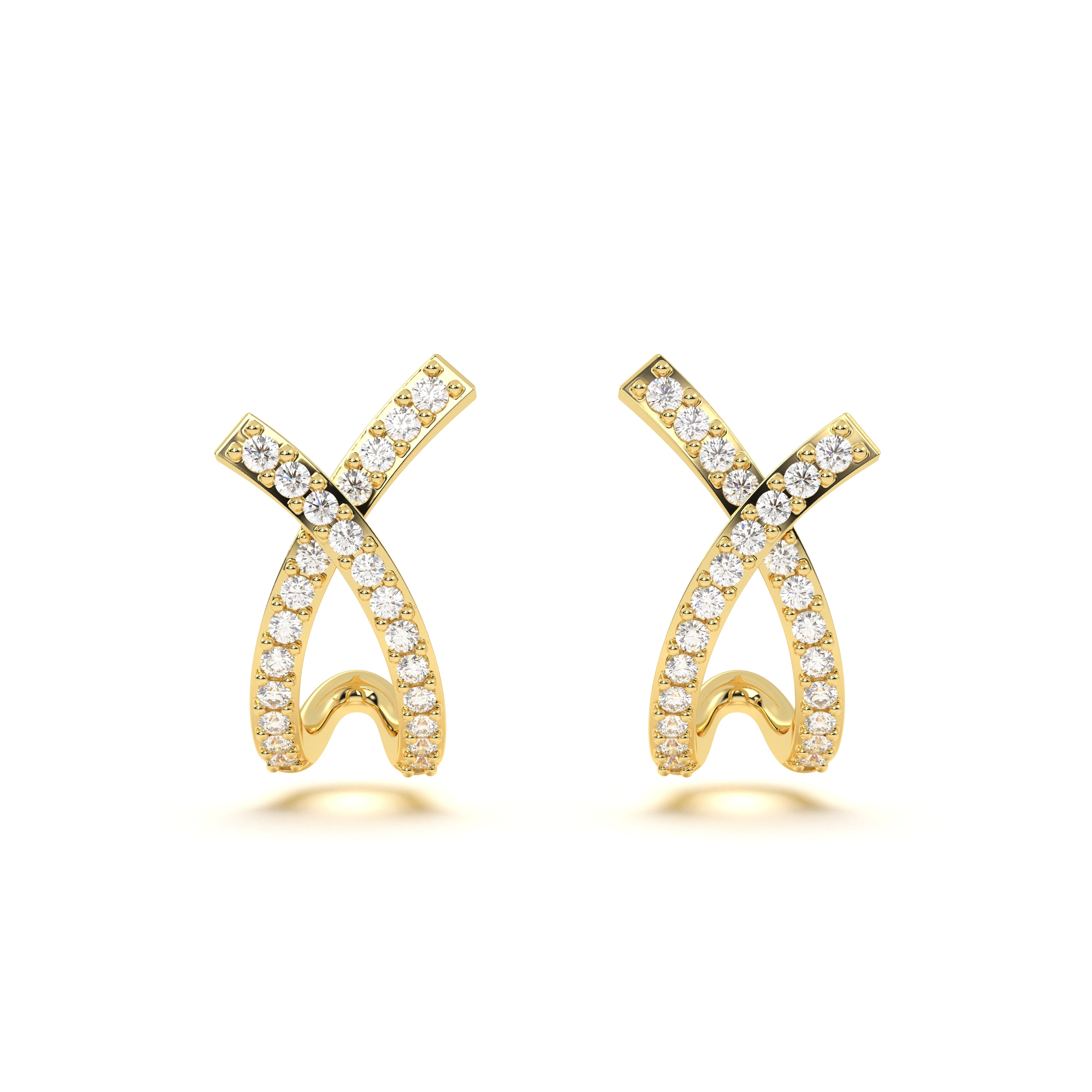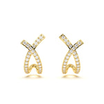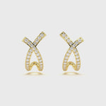 Radiant pavé diamonds highlight the graceful criss-cross form, making these studs a chic essential for any jewelry collection.