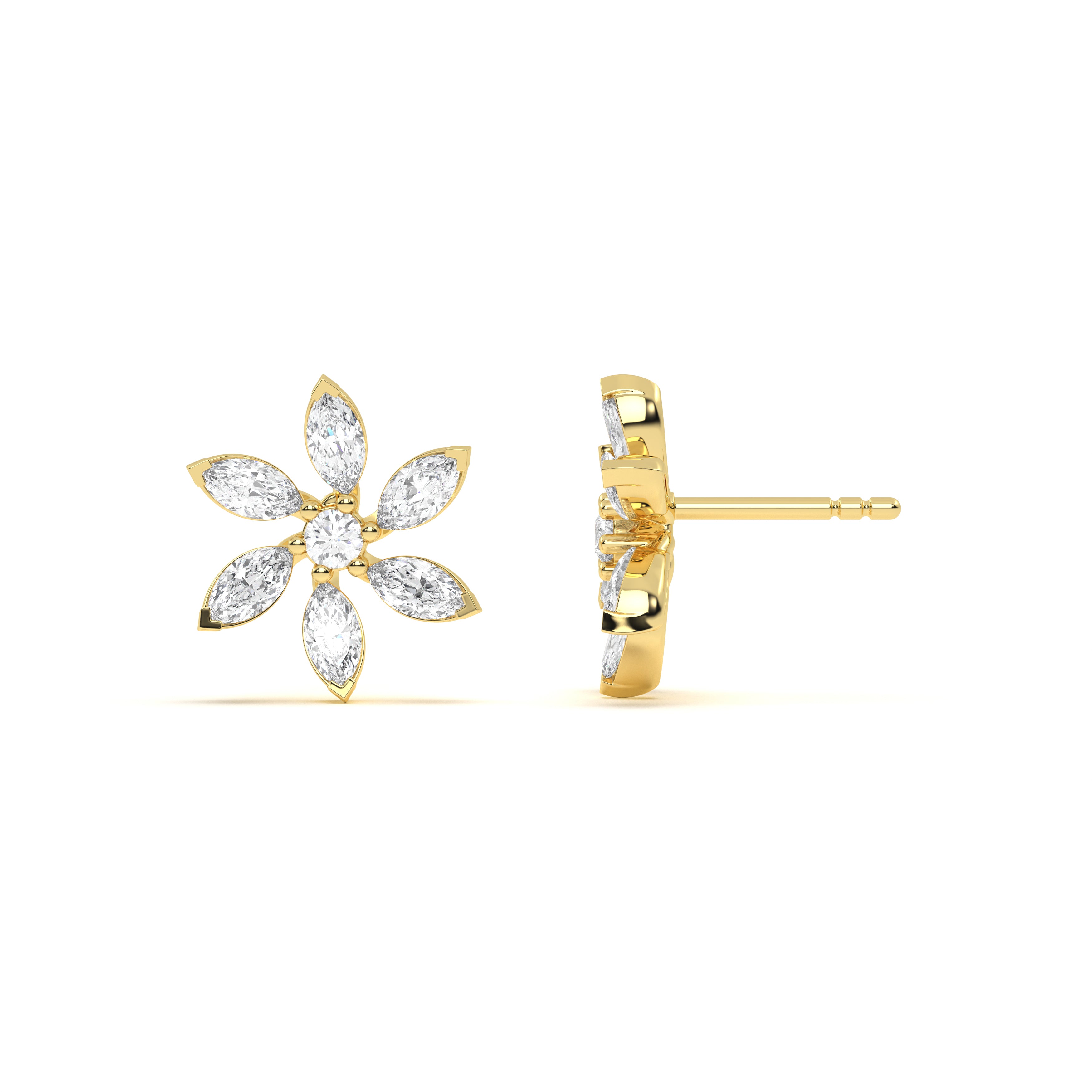 The Estele Diamond Floral Studs blend timeless craftsmanship with contemporary design. Each diamond reflects light beautifully, creating a luminous piece that feels fresh, feminine, and forever stylish.