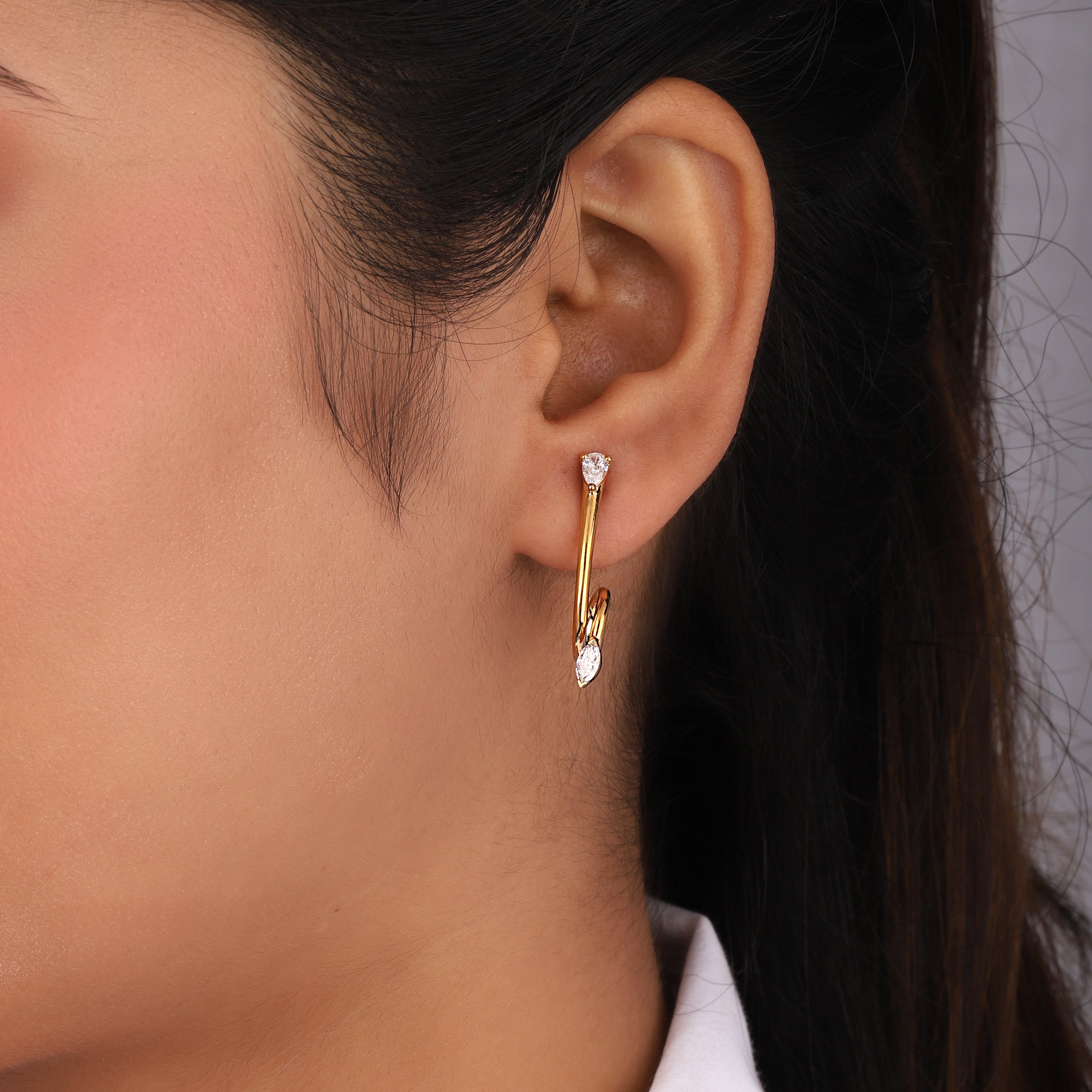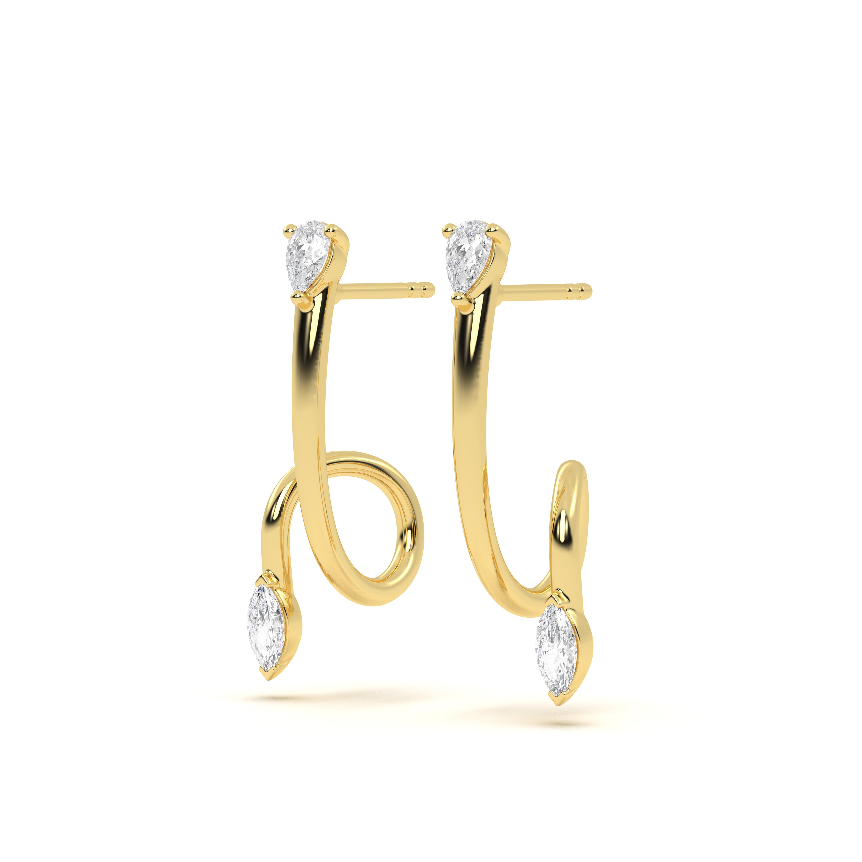 The Marquise Swirl Diamond Studs add playful elegance with lab grown marquise diamonds set in a swirling design. Wear them solo for a standout sparkle or layer with hoops and studs for a chic, modern ear look.