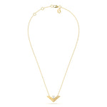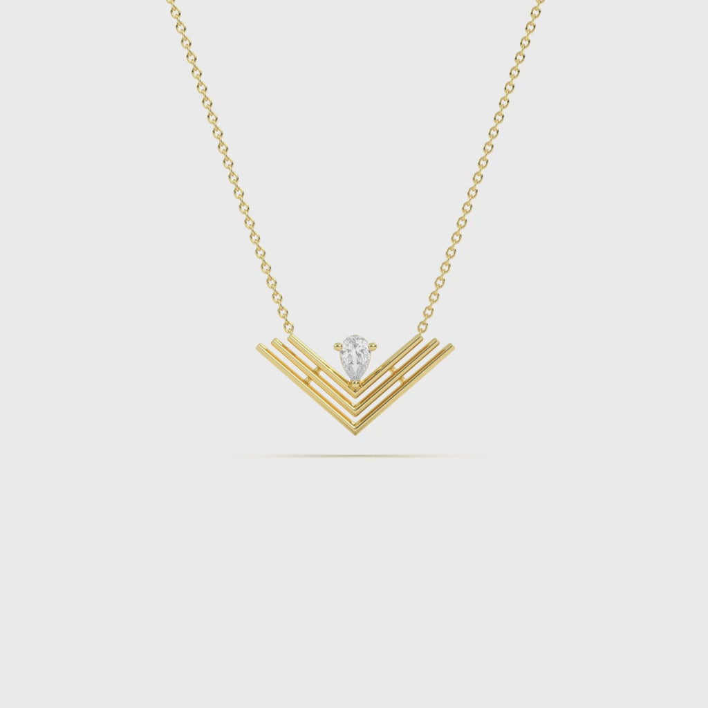 A modern V-shaped design highlighted with a pear cut centerpiece. Its sharp geometric lines bring elegance and strength to everyday luxury.