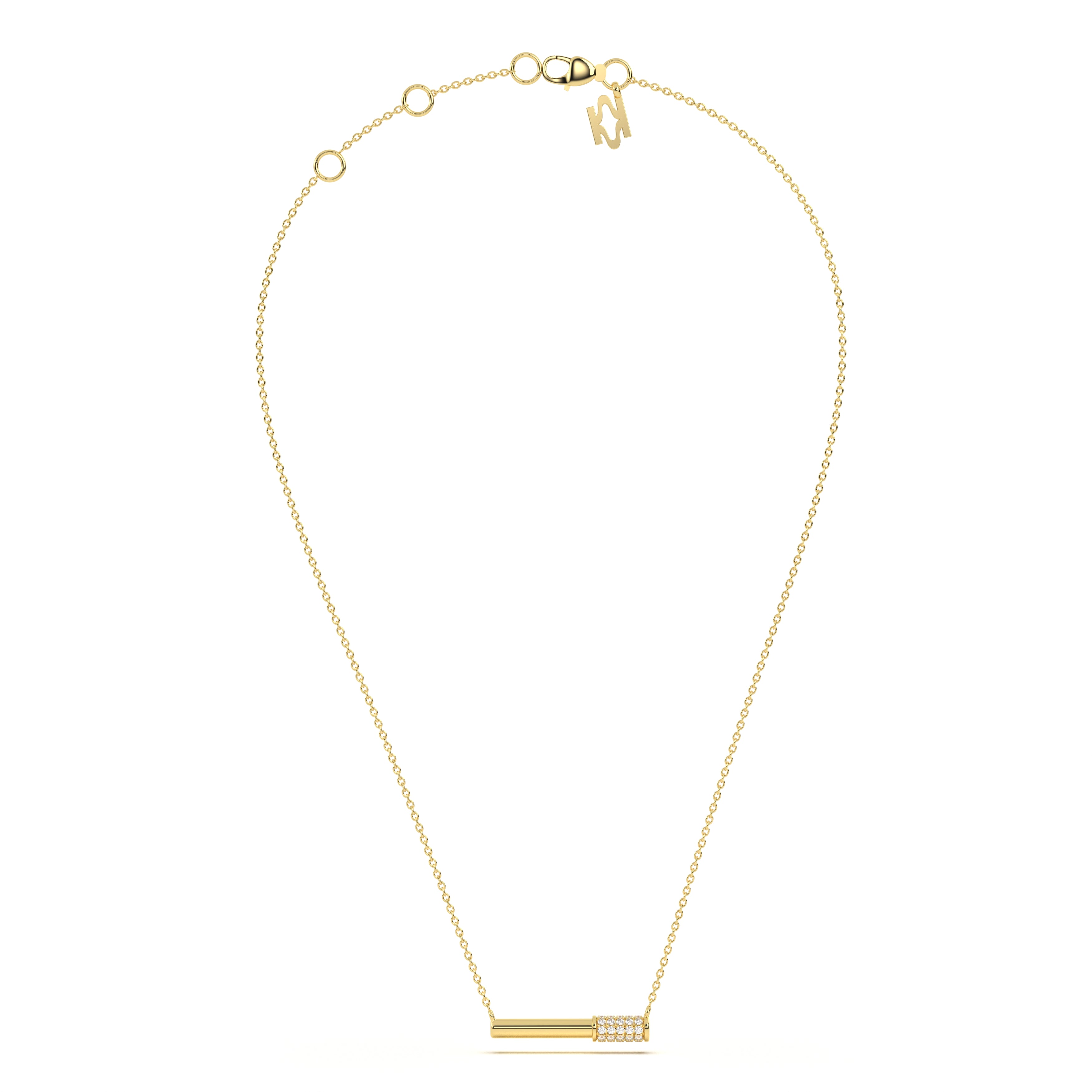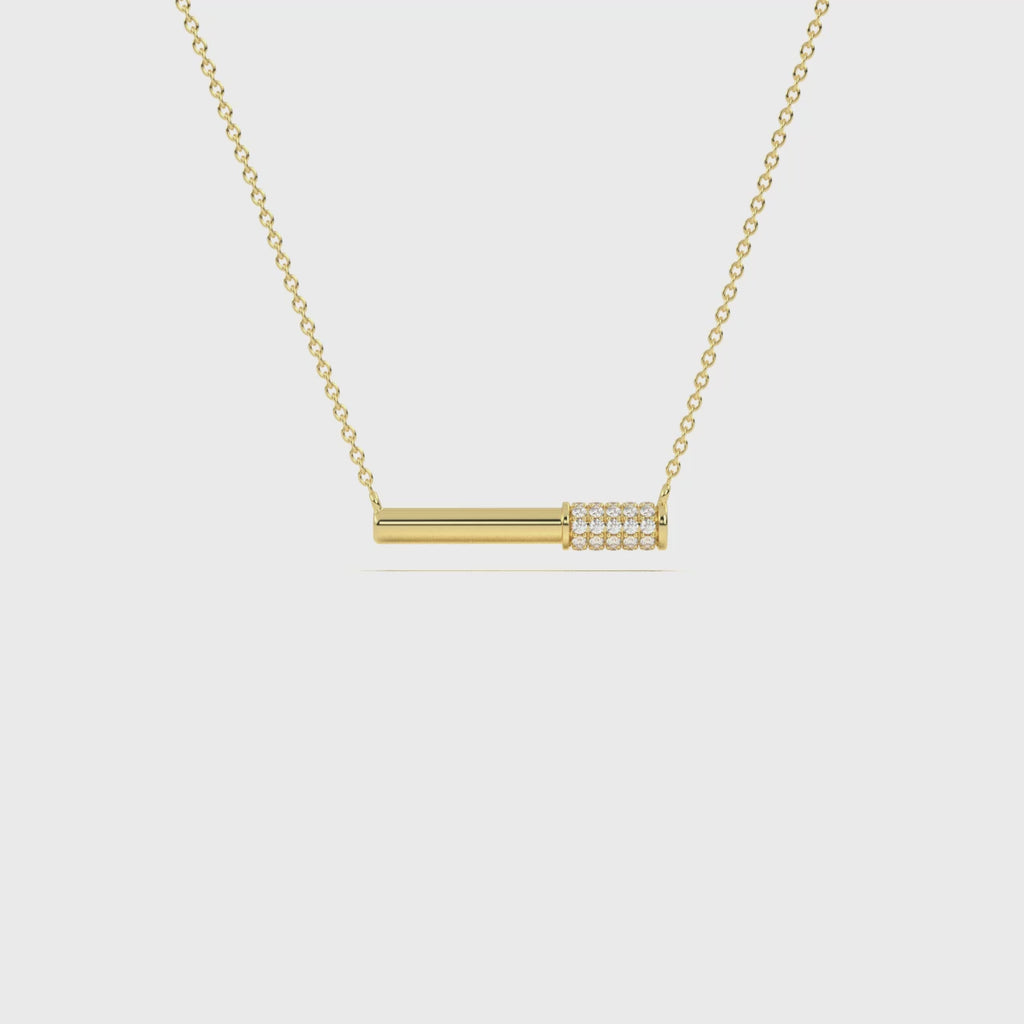 A refined bar pendant adorned with Pave-set diamonds, this pendant embodies understated elegance and modern luxury for everyday wear.