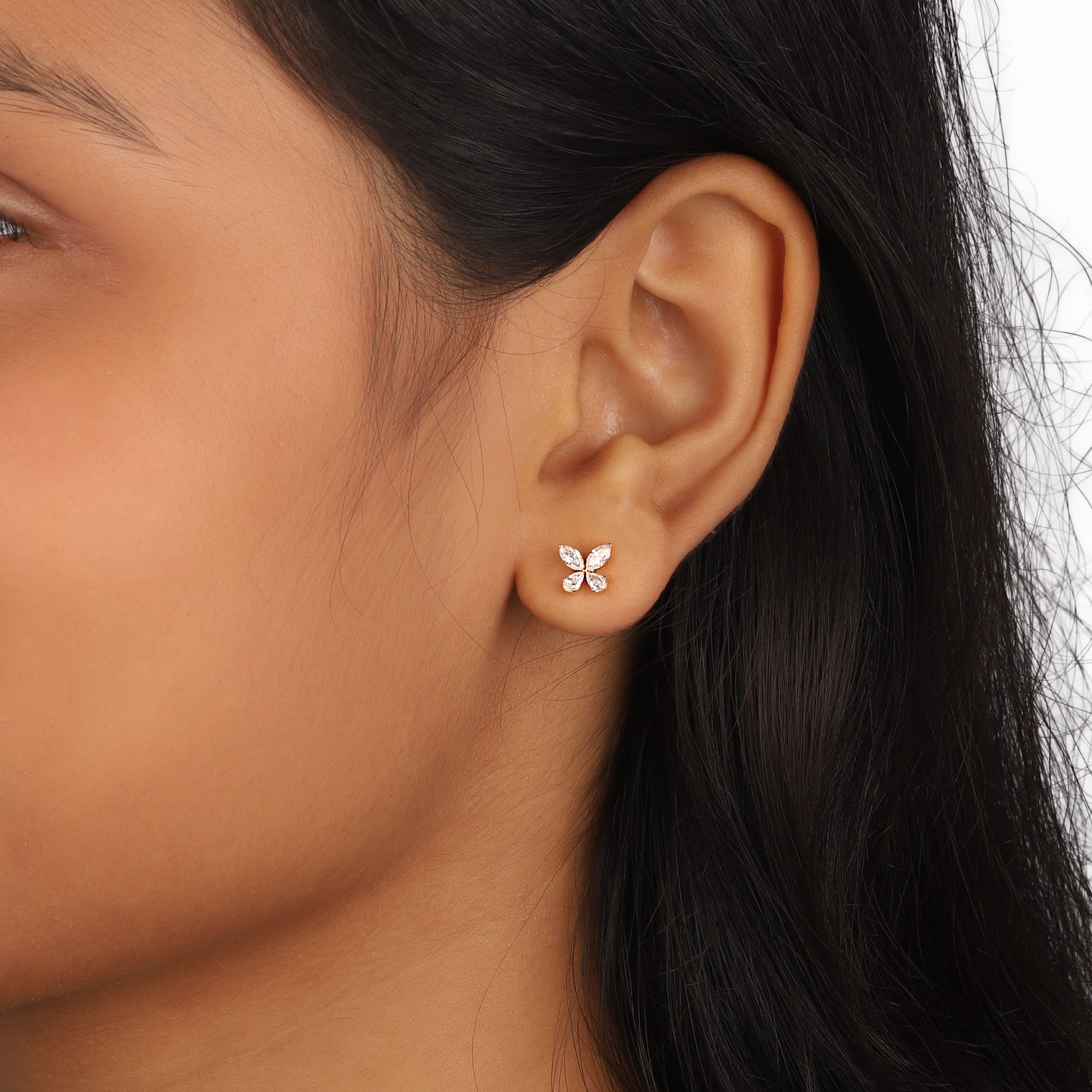 This stud is adorned with brilliant pear and marquise-cut lab-grown diamonds, artfully arranged in a floral silhouette that radiates grace and luminosity. Delicate yet striking, these earrings bring a touch of modern sophistication to everyday elegance.