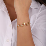 Sculpted in rhythmic waves, the bracelet highlights sparkling round and pear lab grown diamonds. A timeless piece symbolizing love, confidence, and celebration, crafted for versatile everyday luxury.